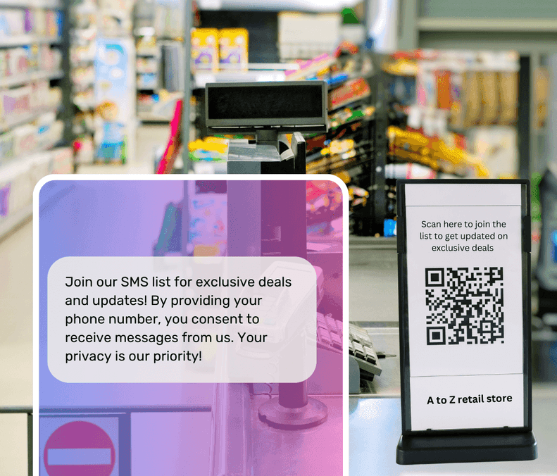 You can build your text messaging marketing list with online forms, checkout pop-ups, QR codes, contests, and in-store banners. You can also promote your SMS list-building strategies for business on social media and email.